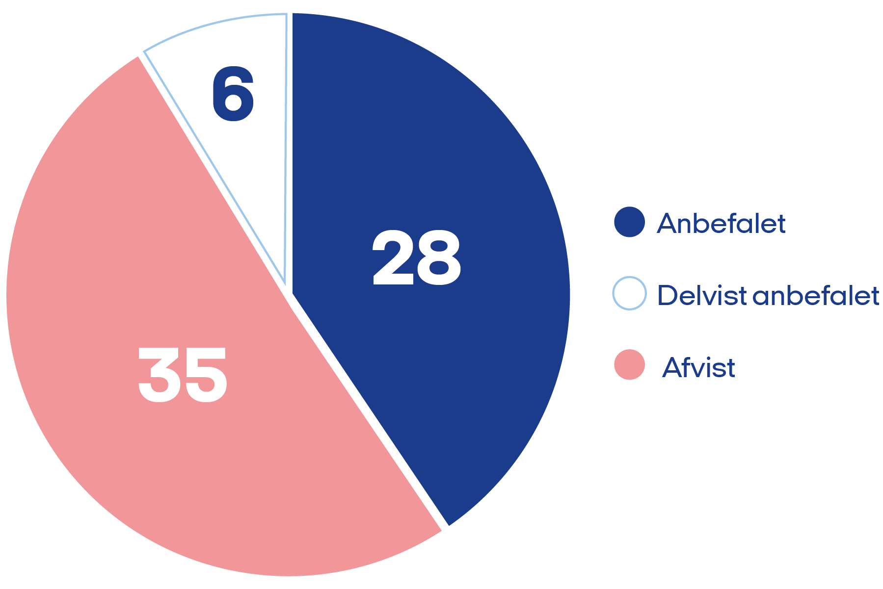 Ud af de 69 er det 28, som Medicinrådet anbefaler, og 35 er afvist. 6 er delvist anbefalet. Det viser en gennemgang af vurderingerne siden 2021, hvor Medicinrådet indførte brugen af QALY.