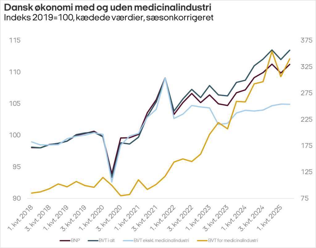 Det er fortsat medicinalindustrien der driver væksten i dansk økonomi, viser de seneste tal fra Danmarks Statistik.