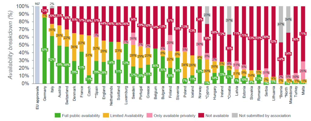Danmark har 109 ud af 167 mulige lægemidler tilgængelig, viser nye tal fra EFPIA, der sammenligner tilgængeligheden af nye og innovative lægemidler på tværs af en række europæiske lande.